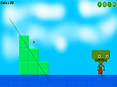 Keep making cuts into boxes over & over to get the alien eyeball to bounce & roll to him.