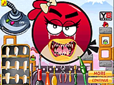 Chú chim giận dữ xinh đẹp đã bị gãy răng vì nghiền nát quá nhiều tòa nhà bằng gỗ và gạch khi cố gắng cứu những chú chim khác. Bây giờ bạn phải sửa răng cho nó bằng cách sử dụng các dụng cụ trên khay và nếu cần, bạn phải cấy răng mới cho chú chim xinh đẹp này.