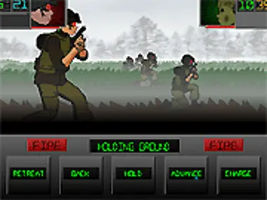 You command the red units. Kill the green units. Select units by clicking on them, move them by clicking on the ground and attack enemies by clicking on them. You can attack enemies with crosshairs on them especially the ones that come in contact. Watch out for the number of units in the squad, you don't wanna be left alone. You can also buy vehicles and guns. Advance your line to the enemy's line to win the mission. Are you ready to give commands?