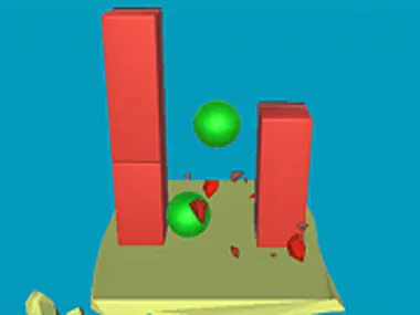 Shoot the red blocks to remove them all to win, but at the same time don't let the green blocks fall into the water.