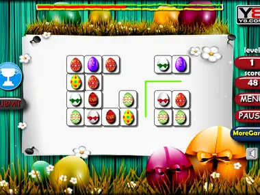 Easter Egg Connect, Trò chơi ghép hình Trứng Phục sinh giống hệt nhau. Trong trò chơi này, bạn cần dọn sạch bảng bằng cách nối các cặp Trứng giống hệt nhau. Mỗi khi bạn nối 2 quả trứng giống hệt nhau, chúng sẽ bị loại bỏ khỏi bảng và bạn sẽ nhận được điểm. Khi nối, bạn phải tuân theo một quy tắc đơn giản là đường nối giữa 2 quả trứng giống hệt nhau không được chứa quá 2 đường gấp khúc. 5 Cấp độ và mỗi cấp độ đều có giới hạn thời gian.