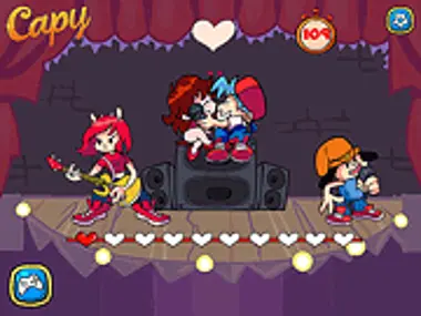 'Friday Night Funkin' Kissing' là một trò chơi hôn thú vị với các nhân vật nổi tiếng của FNF. Boyfiend và Girlfriend đã yêu nhau say đắm. Họ không thể chờ đợi buổi hòa nhạc kết thúc nên đã cố gắng hôn nhau ngay trên sân khấu. Nhưng các đồng nghiệp của họ không thích việc họ hôn nhau thay vì hỗ trợ họ trong buổi hòa nhạc, bạn phải cố gắng lấp đầy tình yêu của họ và không bị bắt. Sử dụng chuột phải để hai người yêu bắt đầu hôn nhau. Hãy nhớ rằng, các thành viên trong ban nhạc không hề khoan dung đâu. Ba cấp độ đầy kịch tính đang chờ đợi bạn. Nếu cấp độ đầu tiên dễ hơn, thì các cấp độ tiếp theo sẽ khó hoàn thành hơn. Lấp đầy càng nhiều trái tim càng tốt và cố gắng thu thập tất cả các trái tim để mở khóa cấp độ tiếp theo. Hãy tận hưởng trò chơi hôn gây nghiện này tại Y8.com!