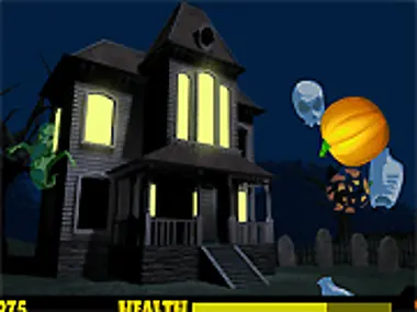 Throw the pumpkins at the ghosts and goblins that approach you. Make them wish they were dead... err