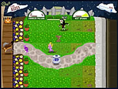 Defend your position as you throw candy to the waves of trick or treaters as they come at you.