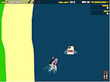 A hovercraft is tough to handle through this rushing river course. As the test driver you need to get as far as you can in the time allowed.