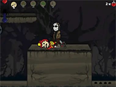 Stab & throw your machete at enemies in this platformer. Jump over spikes & conserve your health.