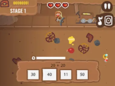 Bạn đã tìm thấy mỏ vàng rồi! Vàng ở khắp mọi nơi! Tùy bạn thể hiện kỹ năng toán học siêu việt của mình để thu thập hết số vàng này và làm giàu! Trả lời đúng một câu hỏi toán học và bạn sẽ lấy được một ít vàng. Thu thập đủ vàng để hoàn thành cấp độ rồi chuyển sang cấp độ tiếp theo! Nhưng hãy cẩn thận: ở đây không chỉ có vàng đâu, và nếu bạn trả lời sai bất kỳ câu hỏi nào, bạn có thể kéo lên một tảng đá và không mất gì, nhưng bạn cũng có thể lấy phải một quả bom và mất mạng!