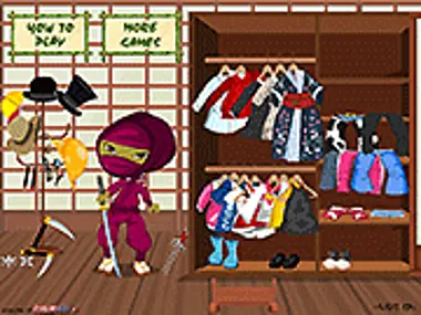 Đối với hầu hết các bạn, ninja chỉ đơn thuần là về bạo lực, tự chủ và sự hoàn hảo trong võ thuật... giờ đây bạn có cơ hội tìm hiểu thêm về các ninja và thời gian rảnh rỗi của họ. Kéo và thả để thử quần áo, giày dép và những thứ khác trong căn phòng này, tự mình khám phá rằng ninja còn hơn cả bộ đồ đen!