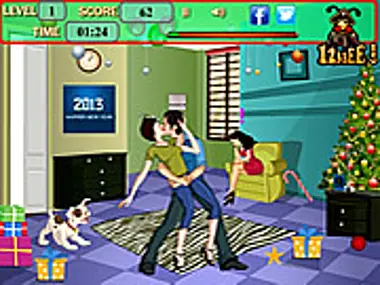 Đôi tình nhân đã đi dự tiệc mừng năm mới. Bây giờ họ muốn hôn nhau. Nhưng có rất nhiều thứ gây cản trở, hãy giúp họ làm điều đó mà không bị người khác phát hiện. CHÚC MỪNG NĂM MỚI!