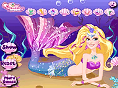 Hóa trang cho Barbie thành một nàng công chúa ngọc trai lấp lánh! Khám phá tủ quần áo nàng tiên cá tuyệt đẹp của cô ấy. Cô ấy có rất nhiều đuôi và áo nàng tiên cá lộng lẫy. Chưa kể đến những phụ kiện ngọc trai xinh đẹp này nữa! Hãy chơi trò hóa trang Công chúa Ngọc trai Lấp lánh vui nhộn này và tận hưởng niềm vui nhé!