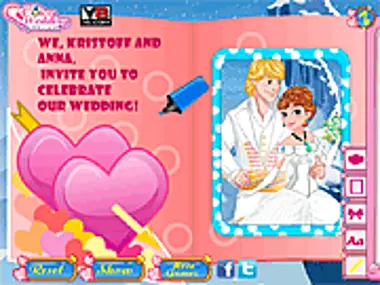 Công chúa Anna và Kristoff sắp kết hôn rồi! Thật là háo hức! Bạn hãy giúp công chúa Anna trang điểm trước cho buổi chụp hình cưới của cô ấy nhé? Sau đó, bạn hãy sử dụng bức ảnh đã chụp để thiết kế một thiệp mời đám cưới cho cặp đôi hoàng gia này. Bạn có thể chọn khung hình, phông chữ và các phụ kiện trang trí khác để tạo ra một thiệp mời thật đáng yêu. Chúc bạn chơi vui vẻ nhé!