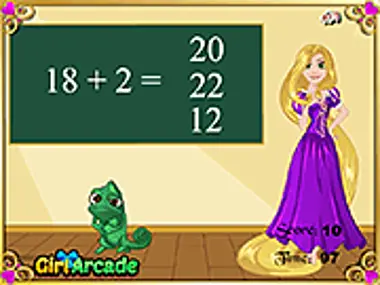 Hôm nay rất quan trọng đối với công chúa Rapunzel của chúng ta và người bạn ếch nhỏ của cô ấy. Họ có một kỳ thi toán khó mà với sự giúp đỡ của bạn, họ có thể vượt qua. Hãy giúp họ giải tất cả các phép tính và gây ấn tượng với bạn bè của bạn bằng kiến thức toán học của bạn.