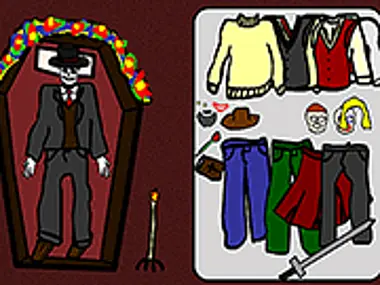 Dress up this scary skeleton. Decide whether the skeleton will be a girl or a boy.