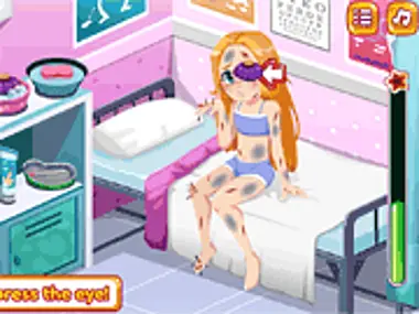 Karly và bạn bè của cô ấy đã ra ngoài chơi một trận bóng đá thật vui. Thật không may, cô ấy đã gặp tai nạn, quả bóng đập vào mắt cô ấy và cô ấy ngã xuống, bị dính dằm khắp người. Hãy điều trị vết thương, loại bỏ tất cả dằm và băng bó lại. Giúp cô ấy cảm thấy tốt hơn bằng cách mặc quần áo cho cô ấy để chuẩn bị cho trận bóng đá tiếp theo!