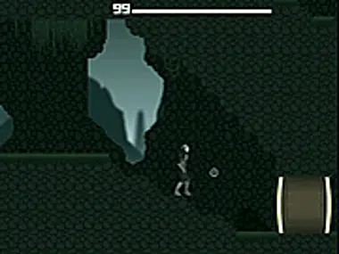 A 25MB game that feels like Metroid. Shoot enemies & unlock new weapons.