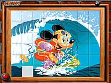 Sort out what mickey's really doing surfing or skiing.