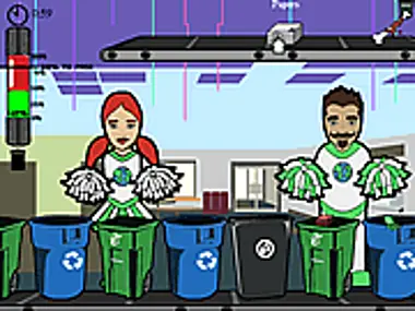 Help out Jesse and James but correctly sorting trash, compost, and recycling into their respective bins!
