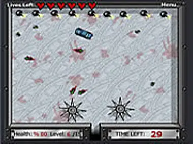 An awesome top-down car game.Use the Arrow keys to drive the car and hit all of the targets in the set time limit. Do not hit any bombs or spike poles. Collect health and life points.