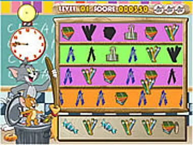 Can Tom and Jerry learn a lesson in working together? Help them clean-up the classroom by matching the items on the shelves.
